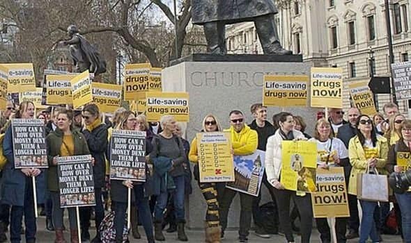 A partir de 2016, o NHS recusou-se a cobrir os medicamentos porque concluiu que o preço cobrado pela Vertex era muito alto. Pais britânicos de crianças com fibrose cística protestaram nas ruas (foto), segurando imagens de seus filhos deitados em camas de hospital.