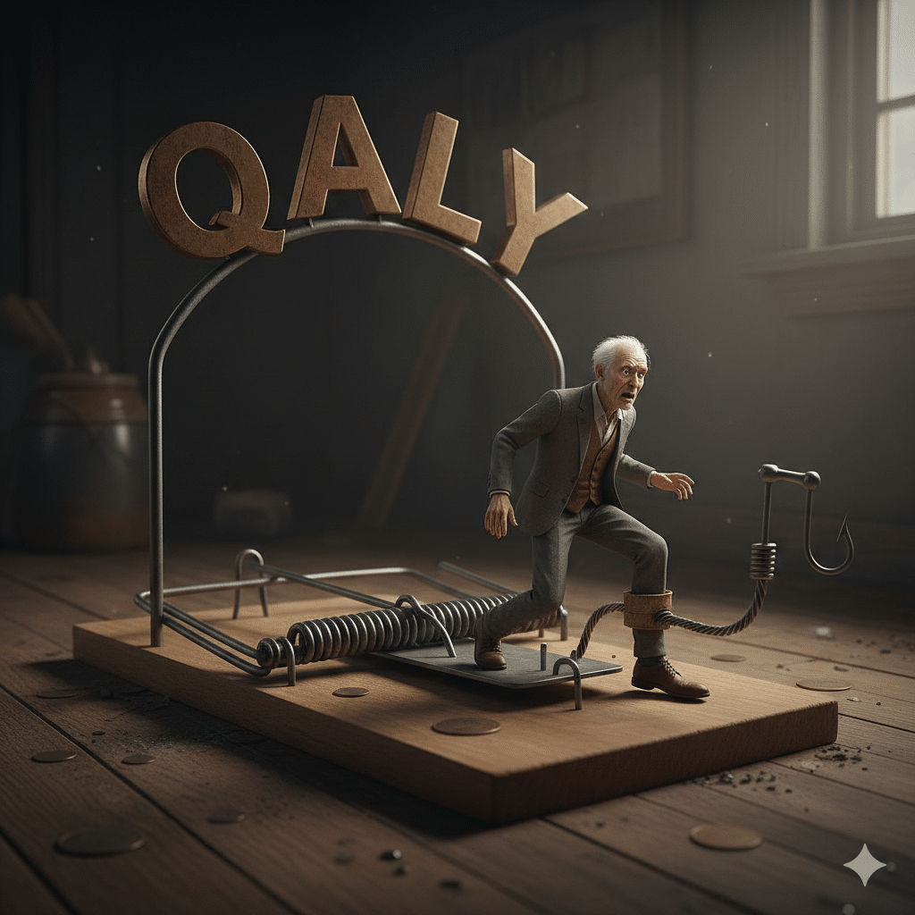 A sigla QALY vem do inglês Quality-Adjusted Life Years, que em português significa Anos de Vida Ajustados pela Qualidade. Essa métrica tenta combinar em um único número dois fatores diferentes: quantos anos de vida um tratamento adiciona e qual a qualidade de vida do paciente durante esses anos. O cálculo funciona multiplicando o tempo de vida por um valor de “utilidade” que varia de 0 (morte) a 1 (saúde perfeita). Vamos parar por aqui porque a idéia é que você entenda de uma vez por todas a armadilha do QALY para idosos, pessoas com deficiência e com doenças raras.