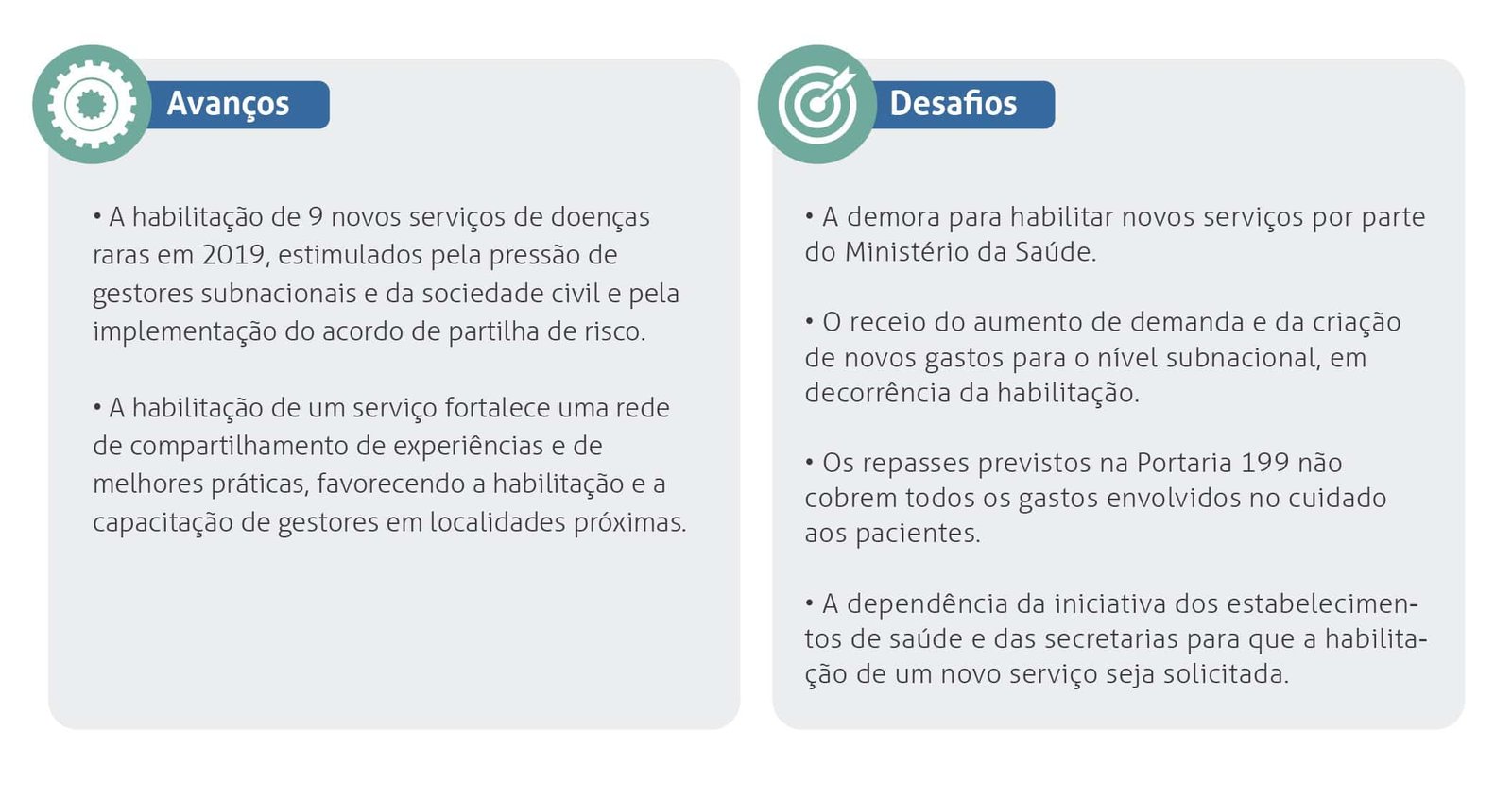 O desconhecimento sobre o funcionamento da Portaria 199/2014, sobretudo nas regiões que ainda não possuem nenhum serviço habilitado, somado à complexidade de se estruturar uma rede para doenças tão específicas acabam por alongar a curva de aprendizado dos gestores sobre como avançar com a política de maneira rápida e coesa. Esta curva, no entanto, tende a diminuir na medida em que novos serviços são habilitados, fortalecendo uma rede de compartilhamento de experiências e de melhores práticas.